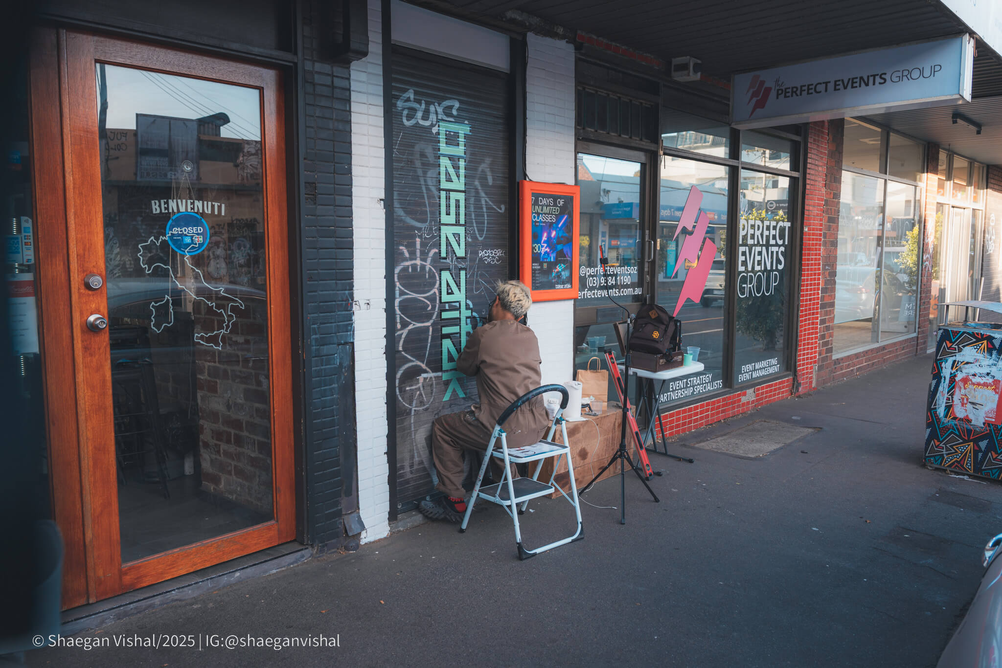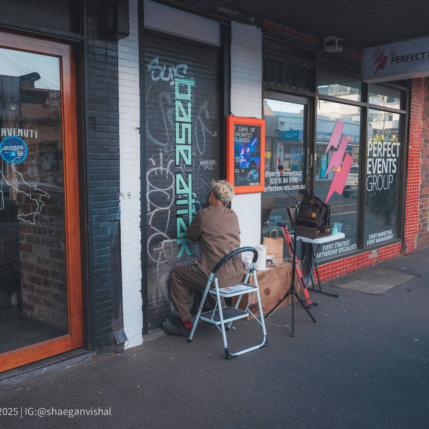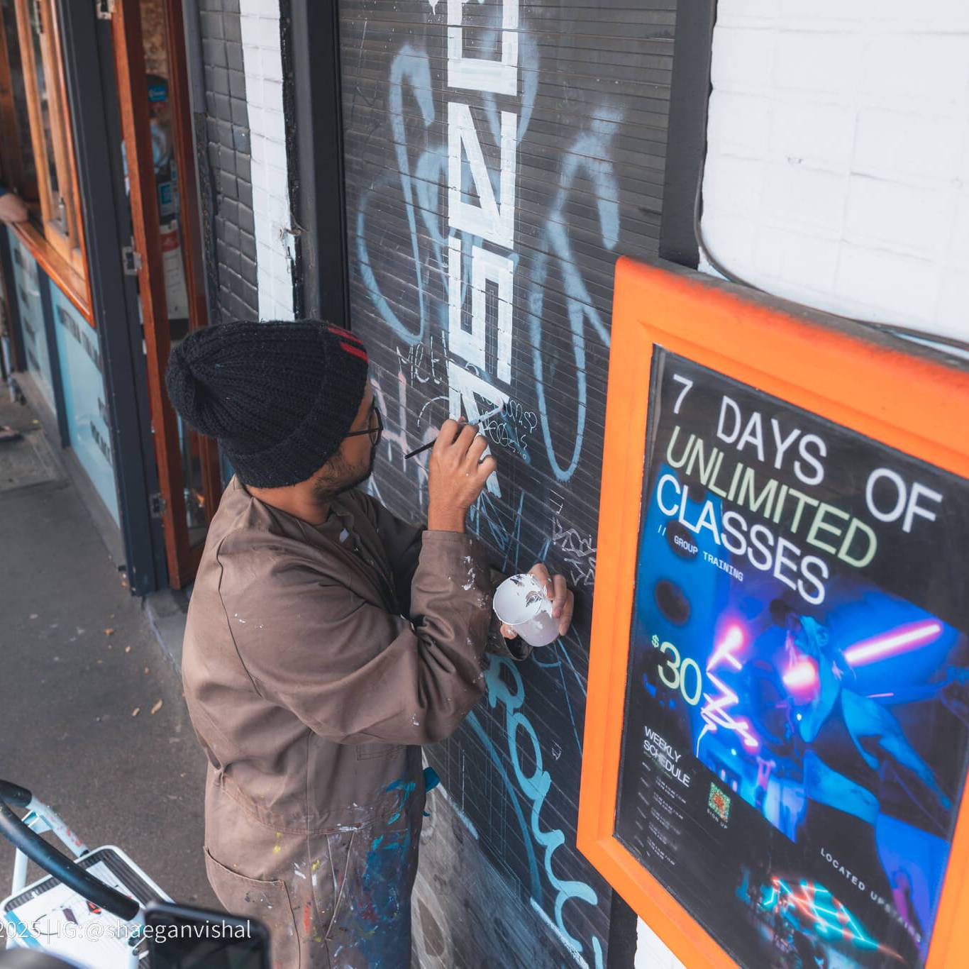 We went with a mint and black outline to reflect both their branding as well as to make a strong visual statement for passers-by whenever it’s closed. The graffiti was also kept intentionally to give it extra texture as well as to reflect the Brunswick area.